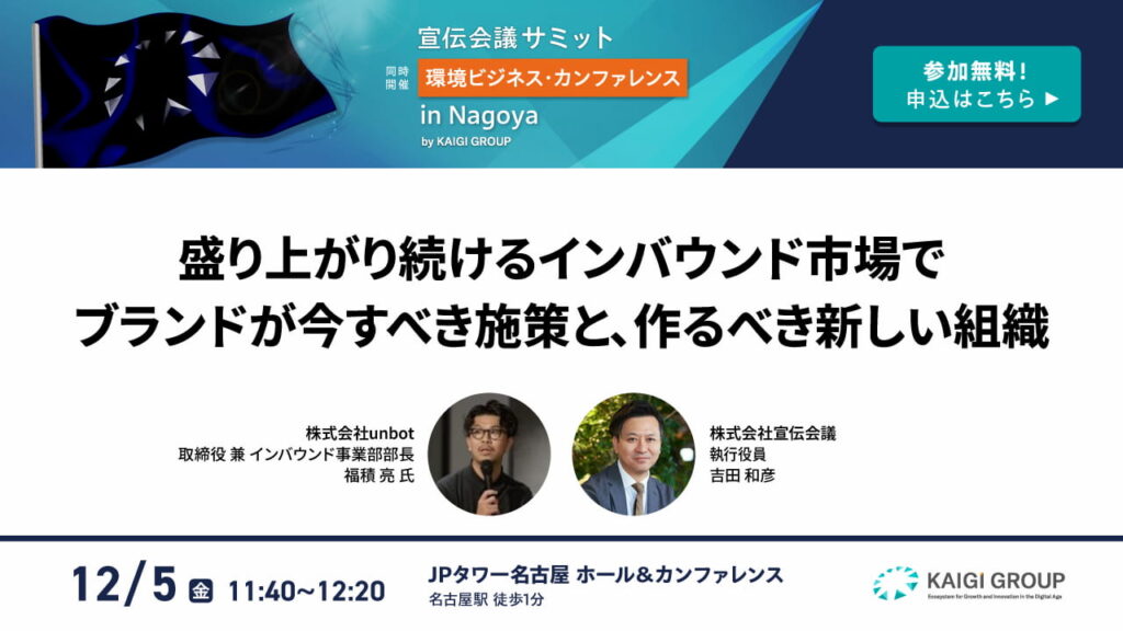 12月5日(金)の10時40分から「宣伝会議サミット/環境ビジネス・カンファレンス in Nagoya」へ登壇します。 会場は、JPタワー名古屋 ホール&カンフ... -