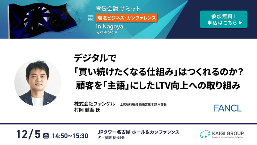 12月5日(金)の14時50分から「宣伝会議サミット/環境ビジネス・カンファレンス in Nagoya」へ登壇します。 会場は、JPタワー名古屋 ホール&カンフ... -