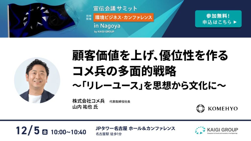 12月5日(金)の10時00分から「宣伝会議サミット/環境ビジネス・カンファレンス in Nagoya」へ登壇します。 会場は、JPタワー名古屋 ホール&カンフ... -