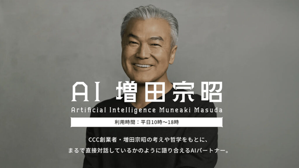 カルチュア・コンビニエンス・クラブ(CCC)が2025年9月、創立40周年を記念して公開した「AI増田宗昭」。創業者である増田宗昭会長の思考や人格を... -