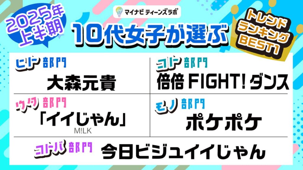 大森元貴、今日ビジュイイじゃん、ポケポケなど 10代女子が選ぶトレンドランキング2025上半期