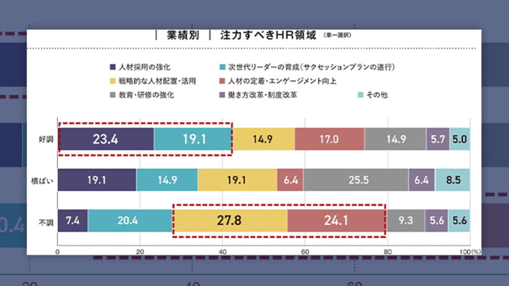 業績好調時は「採用強化」、不調だと「戦略的な人材配置・活用」を重視する傾向顕著に