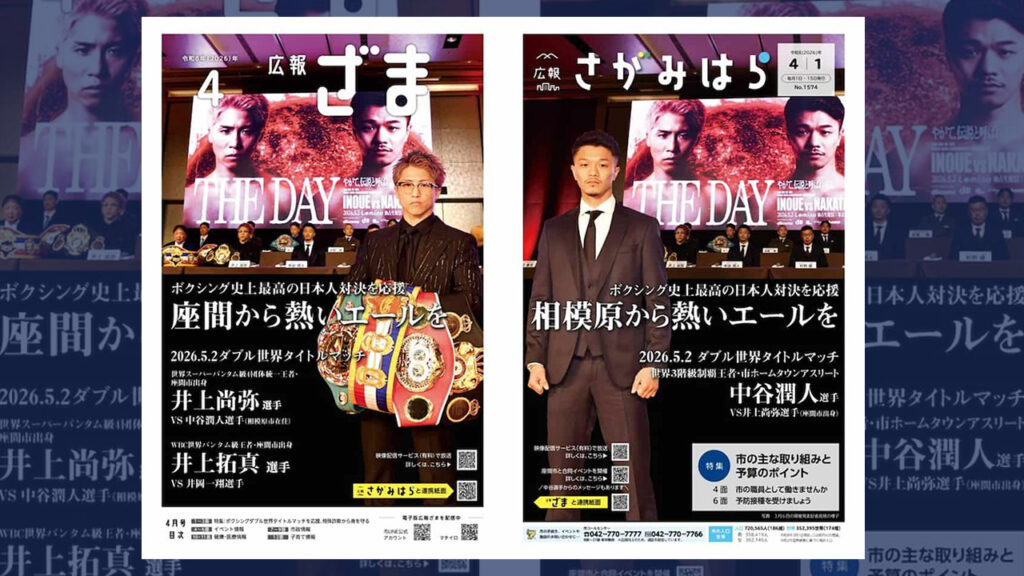 神奈川県相模原市の広報誌の表紙に写るのは、同市在住でプロボクシング元WBC・IBF世界バンタム級チャンピオンで世界3階級制覇王者の中谷潤人選手、...