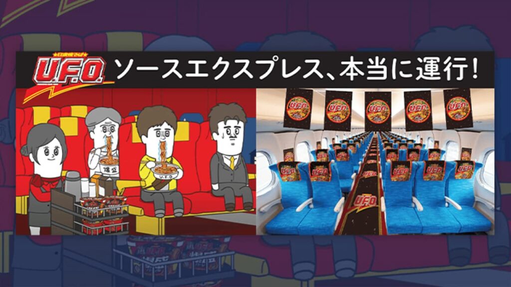 日清が“CMの世界”を再現 「U.F.O.」を車内で食べられる新幹線運行