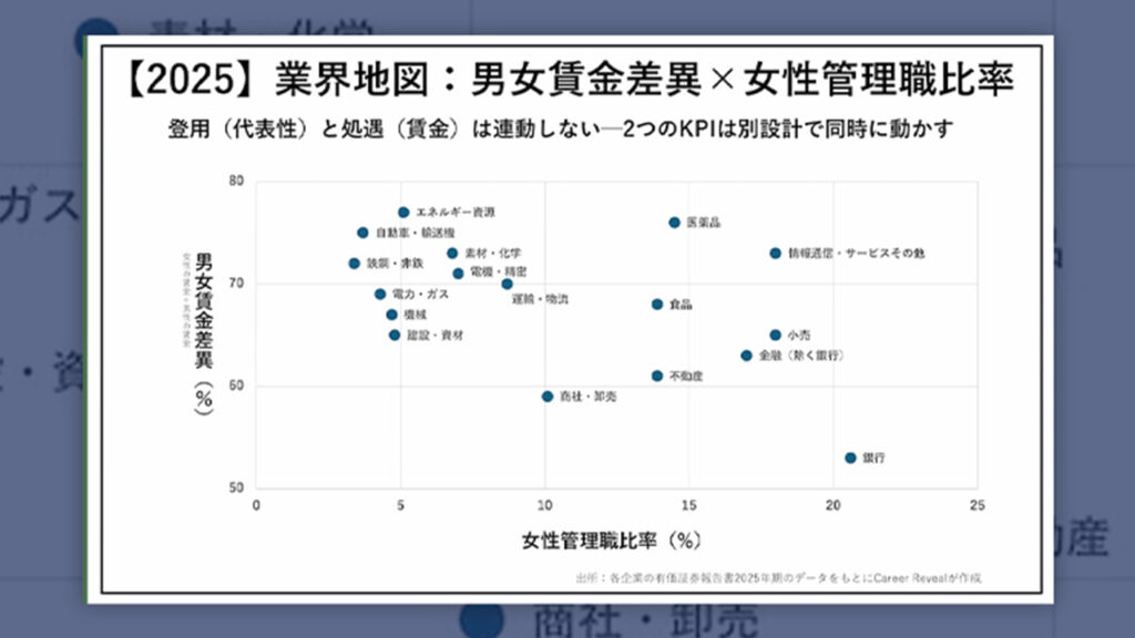 女性管理職比率と男女賃金差異を同時可視化 Career Revealが「業界地図」を公表
