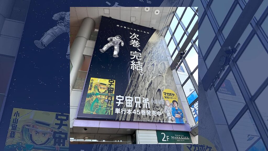 講談社は7月28日~8月3日の1週間、東京・渋谷マークシティにて漫画『宇宙兄弟』(著者・小山宙哉)が次巻で完結する旨を告知する巨大タペストリー... -