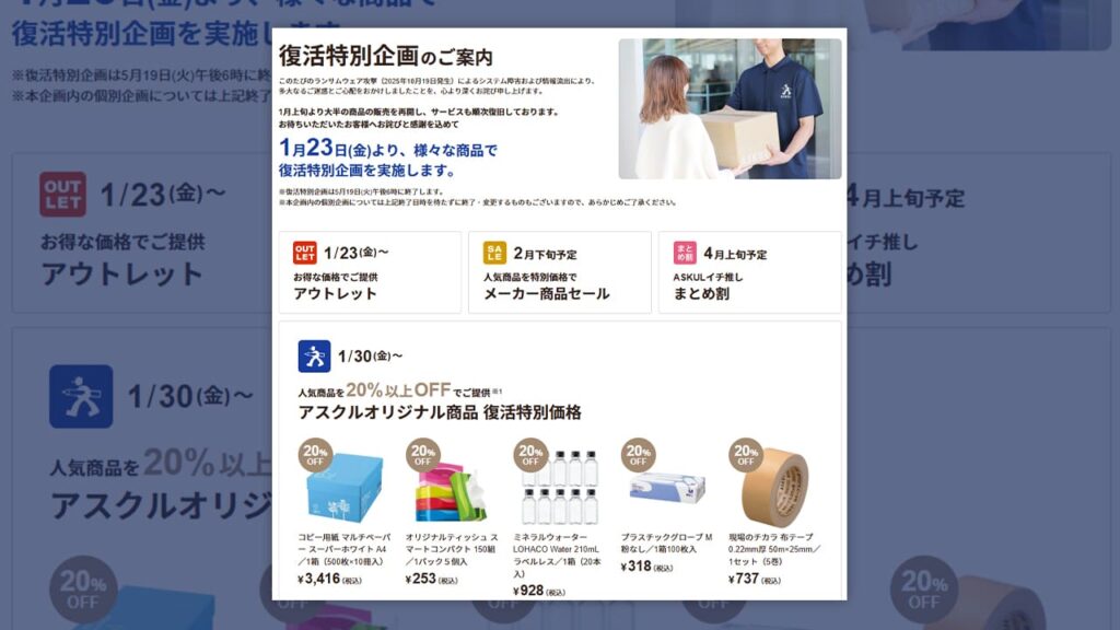 アスクル「もう一度選ばれる理由をつくるために」 システム障害お詫びで大幅値下げ