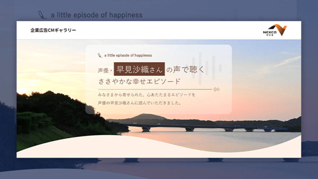 中日本高速道路(NEXCO中日本)は、企業CM『ささやかな幸せのそばに(with a little happiness)』シリーズの一環として、声優の早見沙織を起用した... -