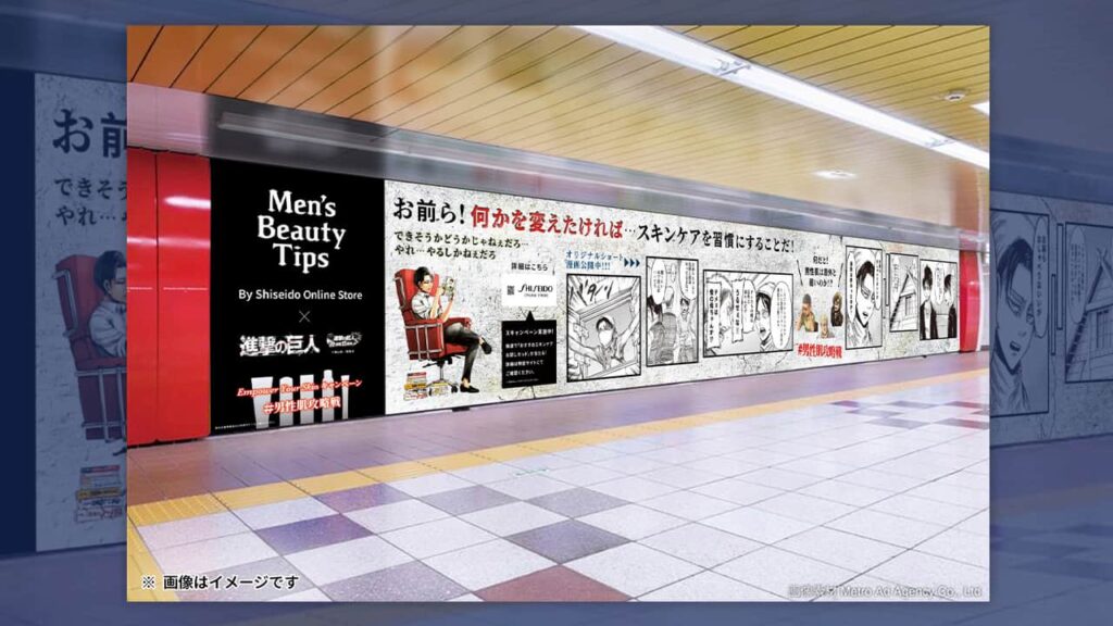資生堂、ECとして初の交通広告 進撃の巨人コラボで男性スキンケアを身近に