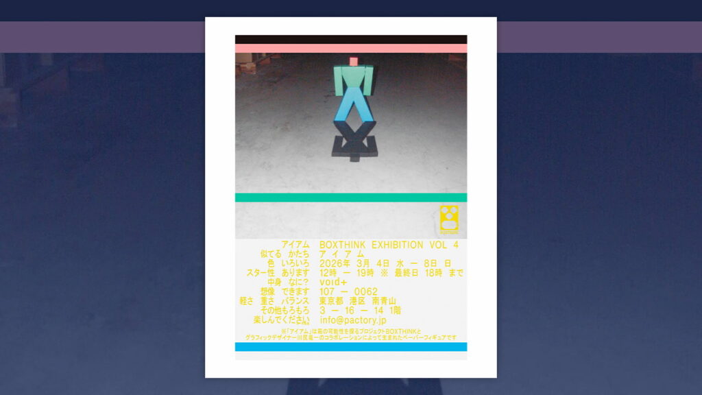 3月4日から、東京・表参道のギャラリーVOID+にてBOXTHINK「アイアム」が始まる。